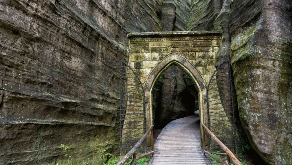 A może po prostu chciałbyś uwiecznić swoją wizytę na nietuzinkowej fotografii? Z pewnością przypadnie Ci do gustu Brama Gotycka, będąca częścią malowniczego krajobrazu skalnego miasta od ponad 180 lat. Stanęła tam na rozkaz Ludwika Karela Nádhernego, któremu zawdzięczamy liczne chodniki, mosty, kładki i schody ułatwiające poruszanie się po labiryncie. Jest też naszym zdaniem najpiękniejszym elementem skalnego miasta, które przepięknie będzie wyglądało na zdjęciach pamiątkowych.